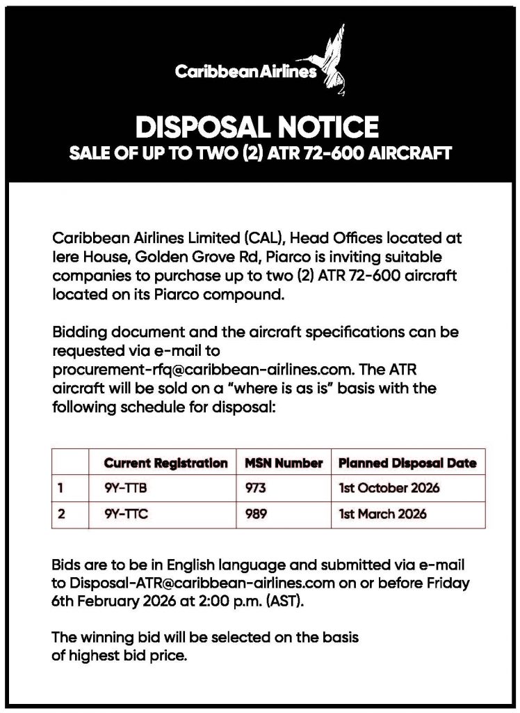 Disposal Notice: Sale of ATR 72-600 Aircraft